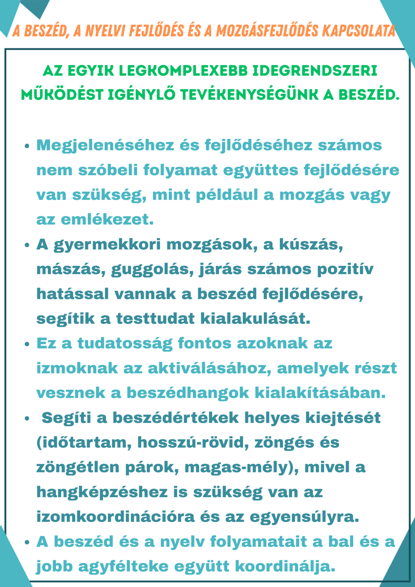 A beszéd, a nyelvi fejlődés és a mozgásfejlődés kapcsolata